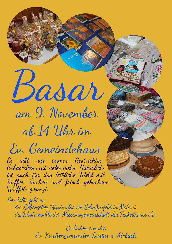Basar am 9. November ab 14 Uhr im Ev. Gemeindehaus